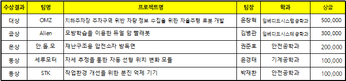 2. 수상팀 상금 지급 - 팀장 통장(수상팀 전체) 및 신분증 사본을 자료실에 1월 7일(수)까지 업로드 요청