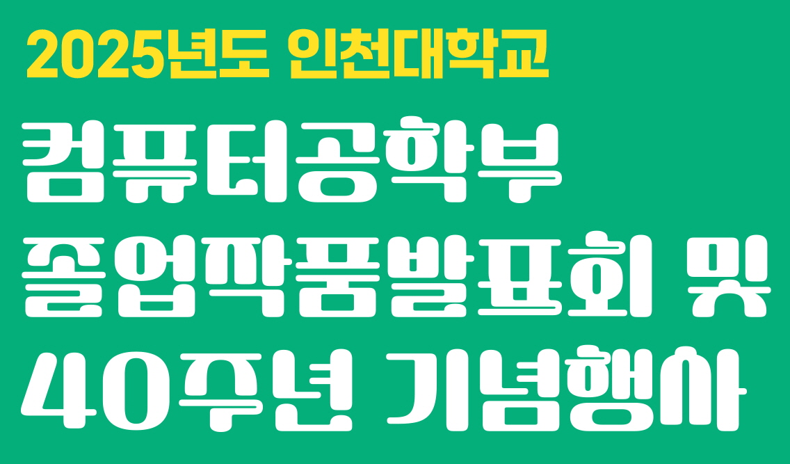 인천대학교 컴퓨터공학부에서는 2025년도 3~4학년 학부생(주/야간)을 대상으로 3~4년간 이수한 교육과정을 통해 개인의 능력 향상 및 결과를 보여줄 수 있는 졸업작품발표회를 개최합니다.