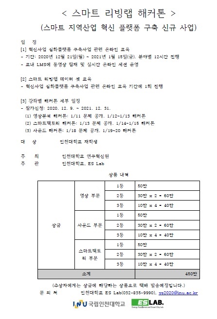 * 문 의 처 : 인천대학교 ES Lab(032-835-9990), ys2020@inu.ac.kr