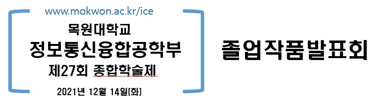 - 경진대회명 : 목원대학교 정보통신융합공학부 제27회 종합학술제 졸업작품발표회