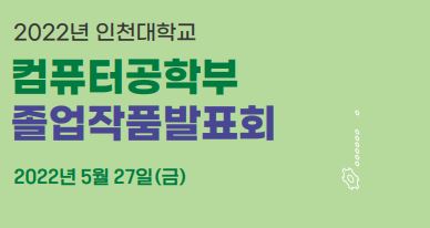 인천대학교 컴퓨터공학부에서는 2022학년도 4학년 학부생(주/야간)을 대상으로 4년간 이수한 교육과정을 통해 개인의 능력 향상 및 결과를 보여줄 수 있는 졸업작품발표회를 개최합니다.